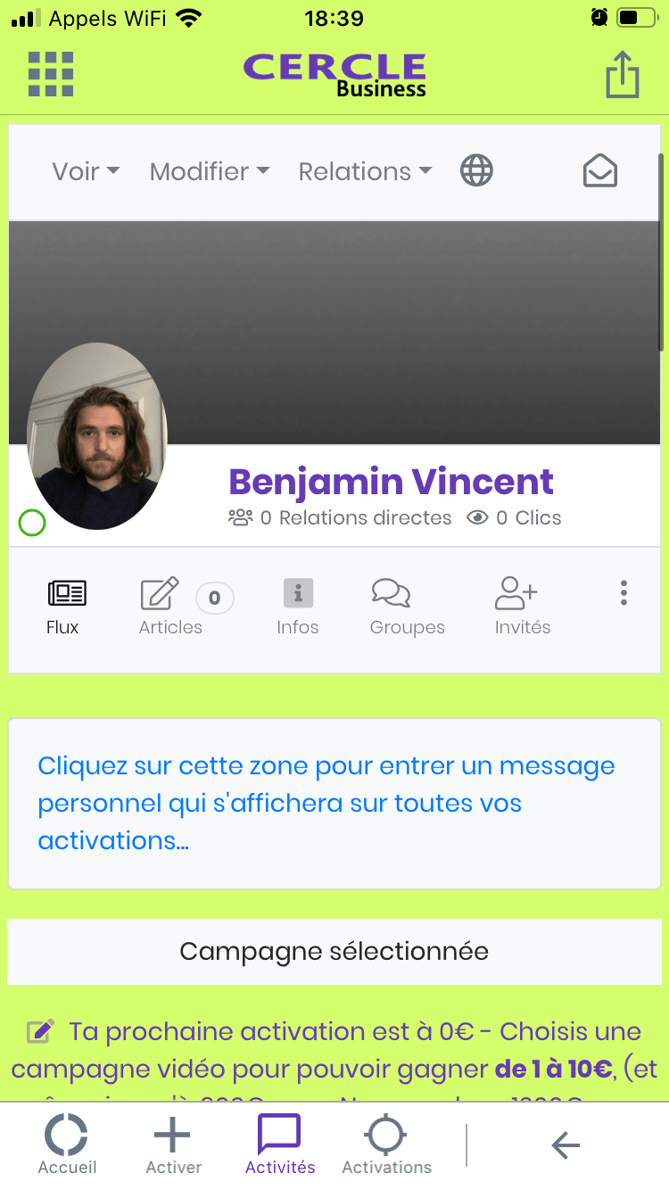 Pour résumer : quand j’utilise Cercle Business, je fais de la pub pour Activ HA. Et quand je fais de la pub, je suis rémunéré. Simple, non ? Ni-une, ni-deux, j’ai décidé d’installer Cercle Business sont mon téléphone pour voir un peu comment cela fonctionnait.